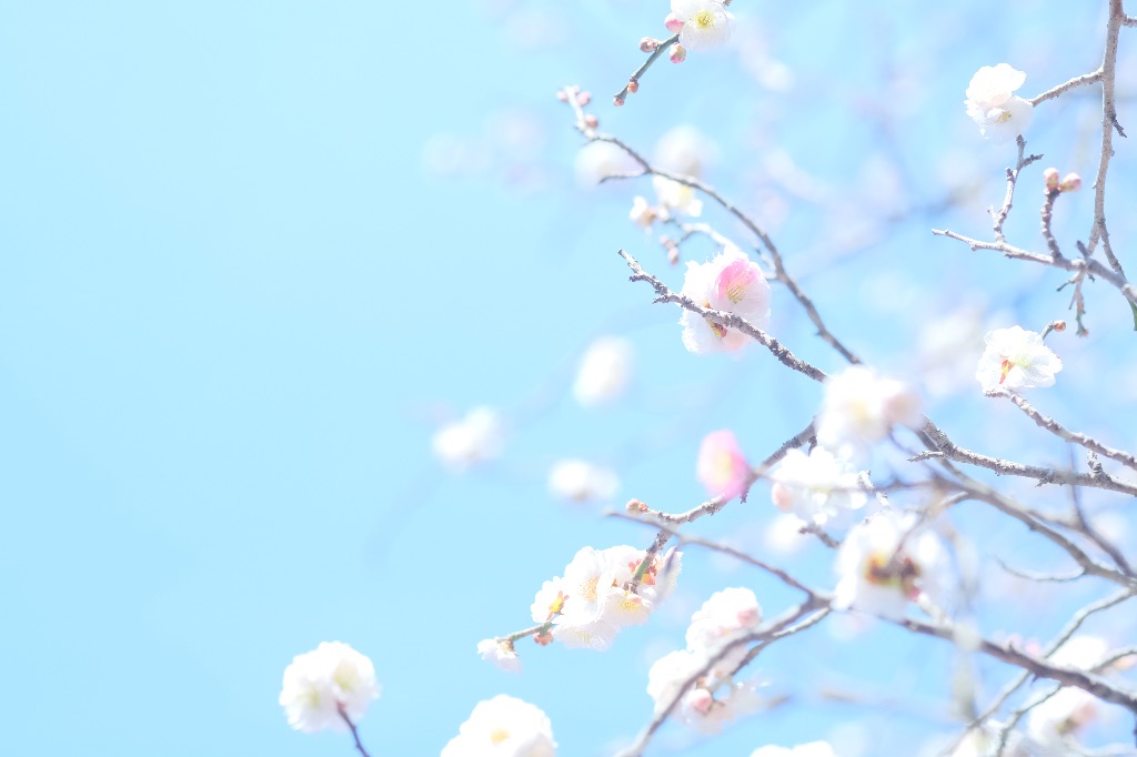 白とピンクの梅が